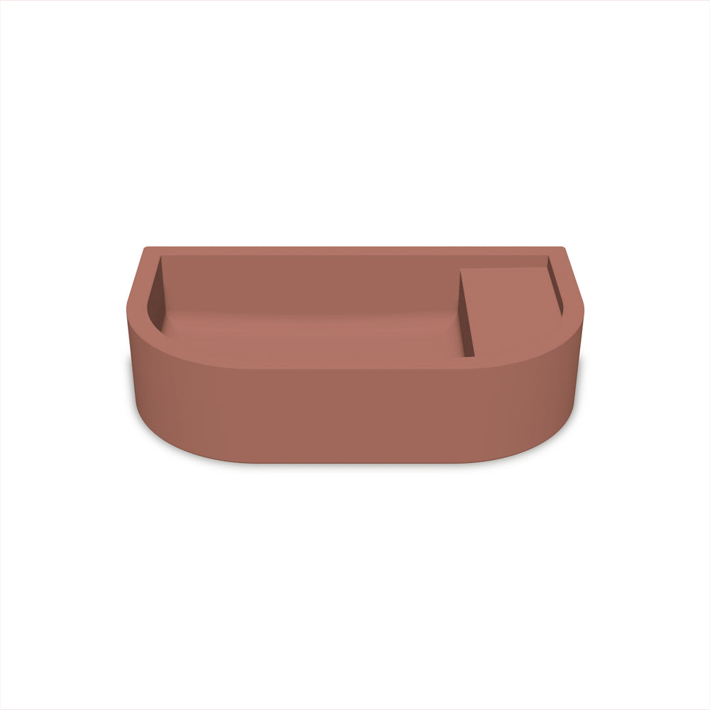 For tight spaces, powder rooms, hotel and apartment blocks this curvy basin has a space for soap or a tap hole, and a further option of overflow. Simple install after tiles, this basin ticks all the boxes. important note Assembly: Please install bracket direct to tiles ( post tiling ) Bracket, fixings and instructions provided per order. Click spec sheet for all bracket and basin info, suggested tap length and more. Please note - Overflow housing rings, inside basin, are coloured as above. The tube and adaptors, however, are chrome and visible beneath the basin.