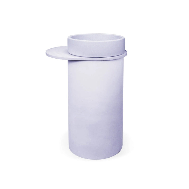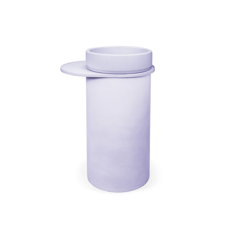 This unique piece, stands proudly in our bathroom in cylinder form. Featuring a Prism Basin Circle, this all concrete pedestal is available in 14 colors, and features a concrete side tray for your toothbrush and soap.