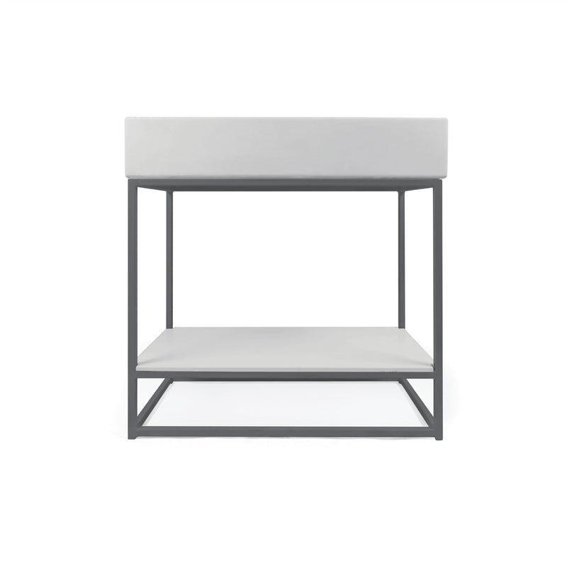 A signature Nood piece, the Trough Sink Vanity Set is a Scandinavian-influenced bathroom statement. It combines the visceral rawness of concrete with lady-like curved edges. included Trough Basin and powder coated frame with matching shelf (mirror, tapware and accessories not included)
