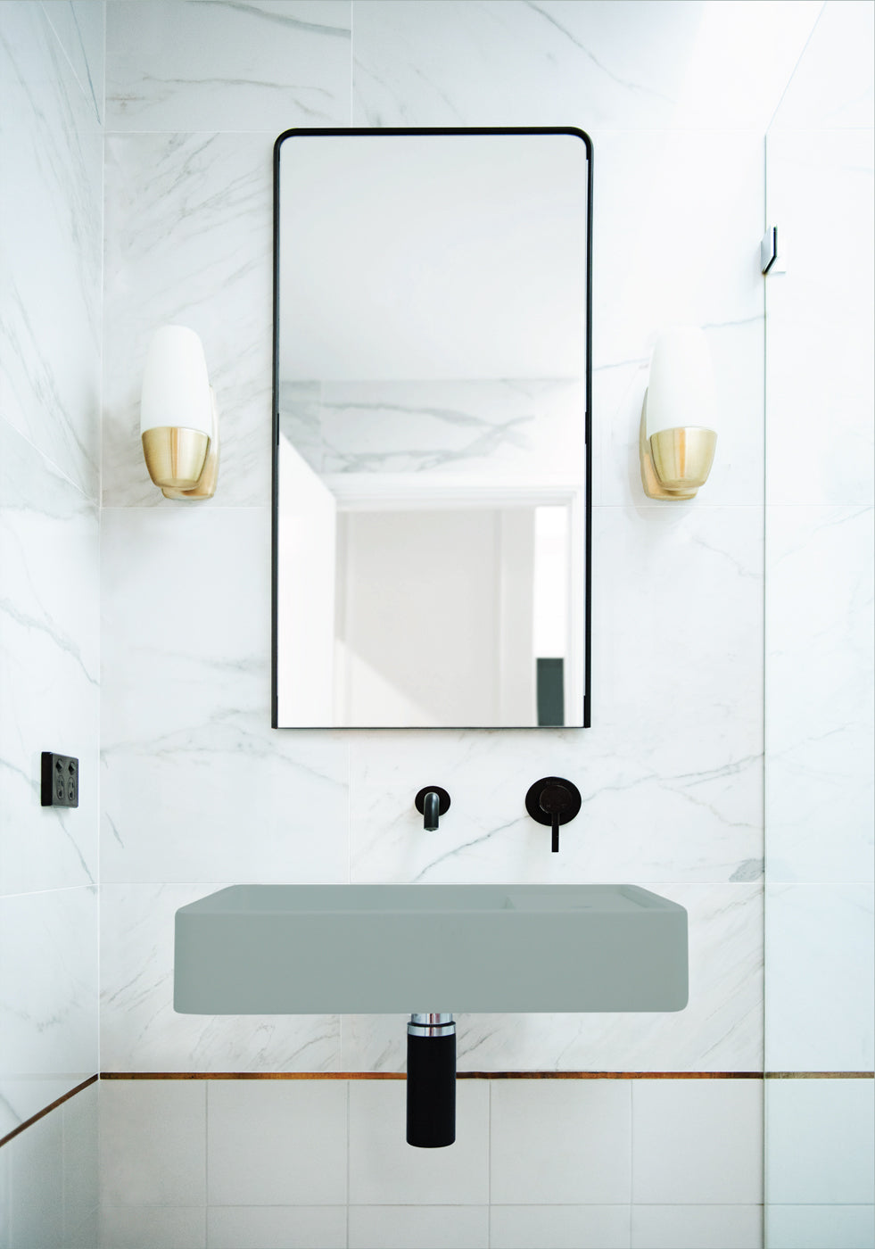 Wall Hung: 8mm aluminium bracket (powdercoated white) included with fixings for timber/masonry wall. To be mounted after tiling. Industrial adhesive for fixing down basin provided.