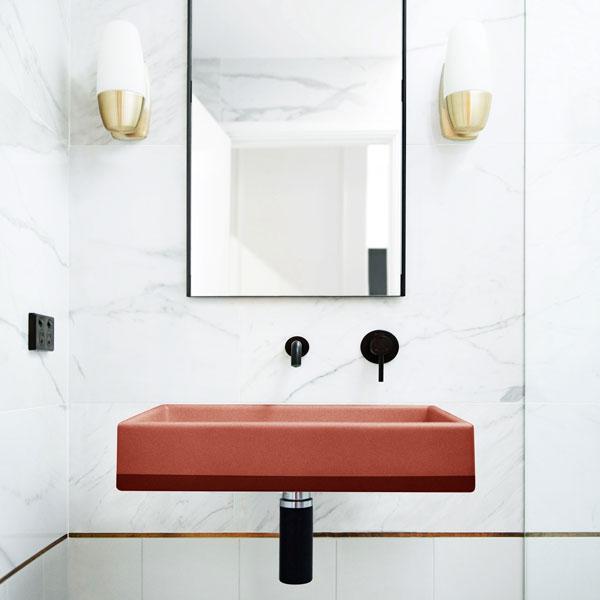 The Box Basin (Two Tone) has now become more versatile. With a handy lightweight yet strong wall bracket the Box Basin can be wall hung in any bathroom setting. Wall hung bracket and fixings are provided with each basin order. For more info on brackets please email info@noodco.com.au. Wall Hung: 8mm aluminium bracket (powder coated white) included with fixings for timber/masonry wall. Please ensure mounted before tiling. Industrial adhesive for fixing down basin provided.