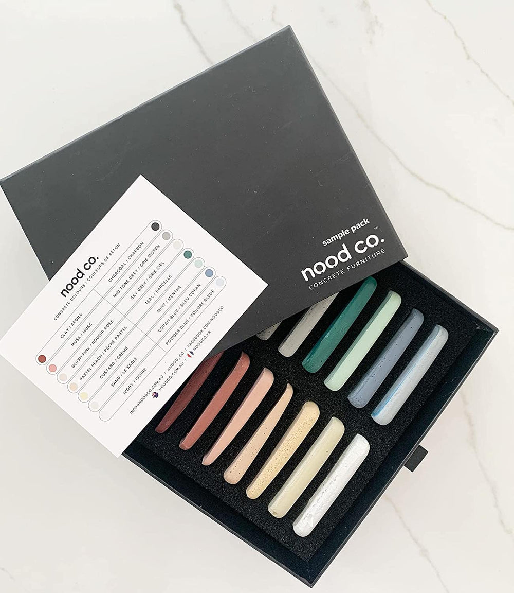 Touch and feel all 15 bespoke Nood colours in a crisp little package. Nood will reimburse your sample pack cost upon purchase of a Nood basin.