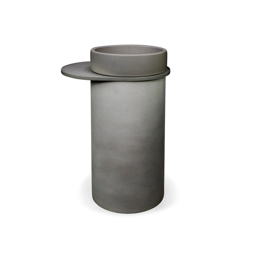 This unique piece stands proudly in your bathroom in cylinder form. Featuring a bowl basin on top, all concrete pedestals are available in your choice of 14 custom colors. Get your free standing, modern basin, with or without a concrete side tray for your toothbrush and soap. Mix and match! You can choose from 14 colors for your basin, tray and cylinder base. Modular bathroom concrete is here. Enjoy. Safe, affordable delivery internationally.