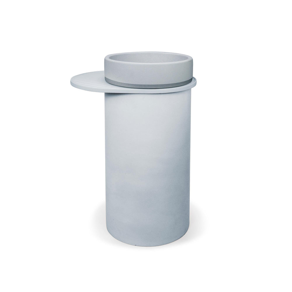 This unique piece stands proudly in our bathroom in cylinder form. Featuring a Bowl Basin (two tone), this all concrete pedestal is available in 14 colors, and is offered both with and without a concrete side tray for your toothbrush and soap. Enjoy.