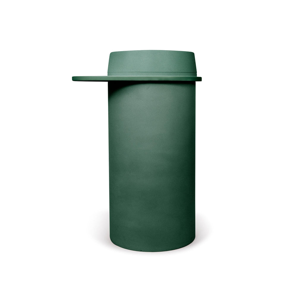 This unique piece, stands proudly in our bathroom in cylinder form, featuring a circular Prism Basin. This all concrete pedestal is available in 14 colors, and features a concrete side tray for your toothbrush and soap. Each piece is interchangeable leaving color selection up to you.