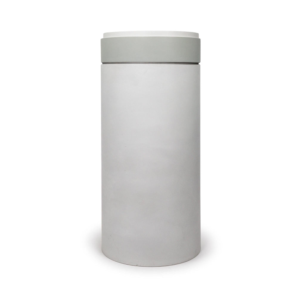 This unique piece, stands proudly in our bathroom in cylinder form, featuring a Stepp Circle Basin (two tone) on top. This all concrete pedestal is a modern day modular design—meaning you get to choose the color of the basin, cylinder, and tray if you want one. Each piece is available in all 14 colors. Enjoy.