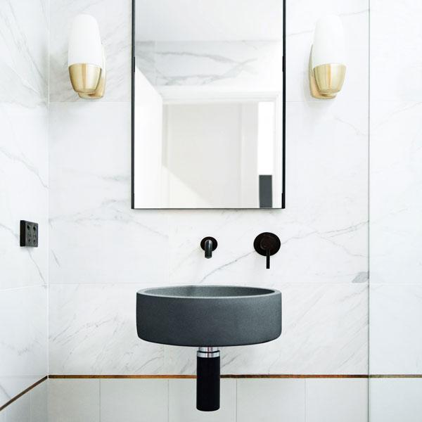 With its sleek walls and clean-cut edges, the concrete Hoop Wall Hung Basin by Nood Co adds a refined touch to the bathroom. important note Assembly: Please install bracket direct to masonry or timber wall, prior to sheeting and tiling. Click spec sheet for all bracket and basin info, suggested tap length and more.
