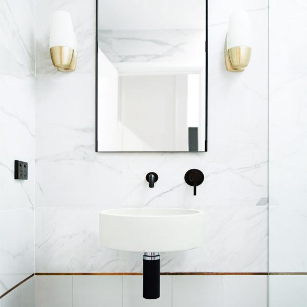 With its sleek walls and clean-cut edges, the concrete Hoop Wall Hung Basin by Nood Co adds a refined touch to the bathroom. important note Assembly: Please install bracket direct to masonry or timber wall, prior to sheeting and tiling. Click spec sheet for all bracket and basin info, suggested tap length and more.