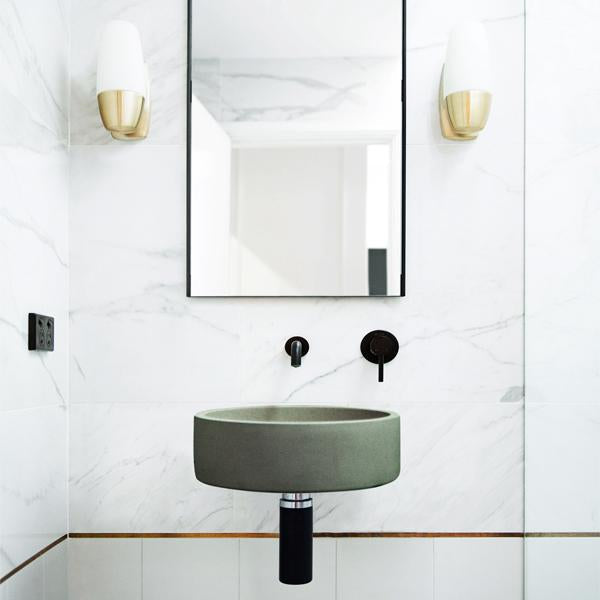 With its sleek walls and clean-cut edges, the concrete Hoop Wall Hung Basin by Nood Co adds a refined touch to the bathroom. important note Assembly: Please install bracket direct to masonry or timber wall, prior to sheeting and tiling. Click spec sheet for all bracket and basin info, suggested tap length and more.