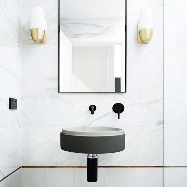 This stunning bathroom piece features a powdercoated stand with adjustable feet, a stunning concrete tray, wall brackets and of course your favourite basin of choice. Available in 14 Nood colors.