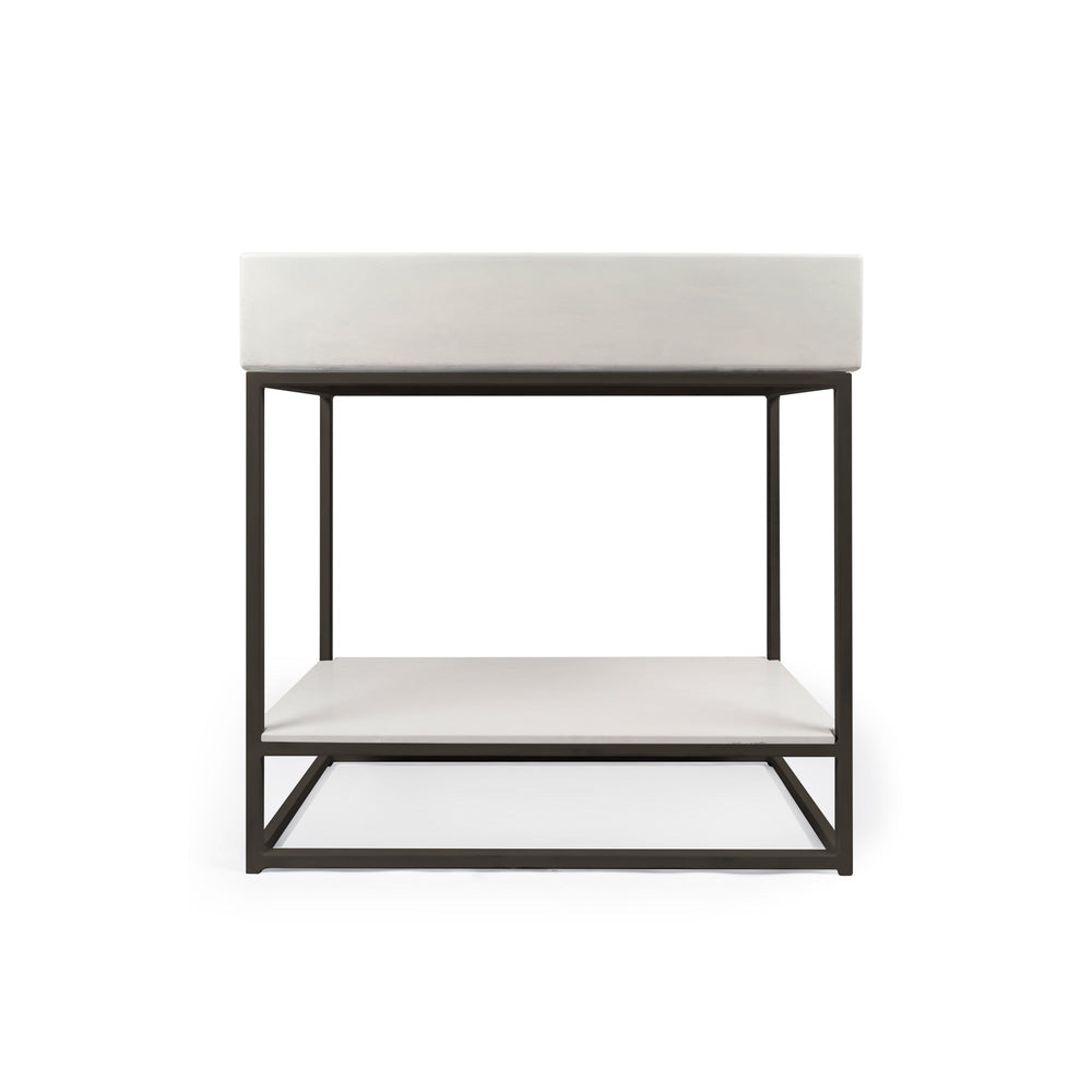 A signature Nood piece, the Trough Sink Vanity Set is a Scandinavian-influenced bathroom statement. It combines the visceral rawness of concrete with lady-like curved edges. included Trough Basin and powder coated frame with matching shelf (mirror, tapware and accessories not included)