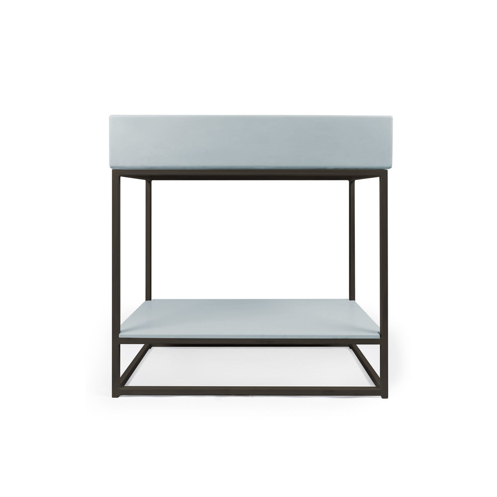 A signature Nood piece, the Trough Sink Vanity Set is a Scandinavian-influenced bathroom statement. It combines the visceral rawness of concrete with lady-like curved edges. included Trough Basin and powder coated frame with matching shelf (mirror, tapware and accessories not included)